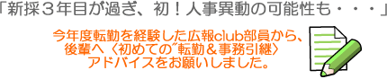 ○転勤しそうな職員の予想をたてて書類を準備できるものを準備しています。